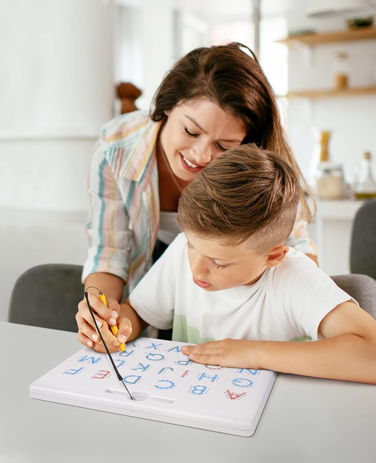 - 2 Sided Letter Tracing Board: Upper case on one side and Lower case on the other side. The vowels in red and consonants in blue are convenient for children to learn pronunciation and grammar